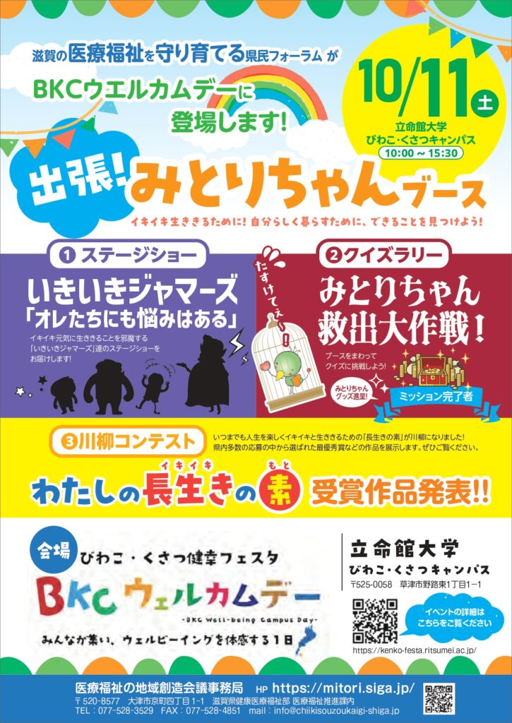 滋賀の医療福祉を守り育てる県民フォーラムが今年は他団体のイベントへ「出張みとりちゃんブース」として出展します!